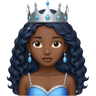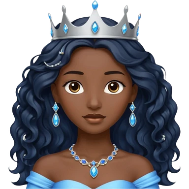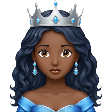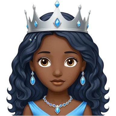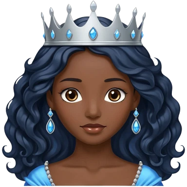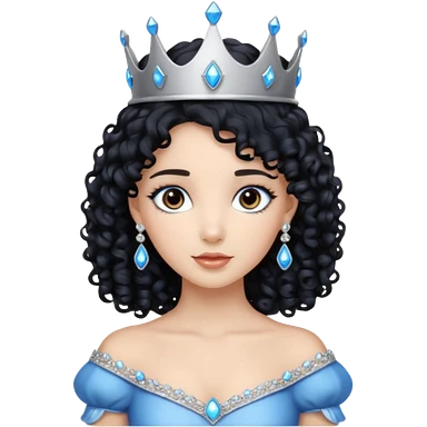 Por favor hazme el emoji de la princesa pero morena con el pelo negro y rizado, los ojos marrones y la corona plateada con jollas azules emoji