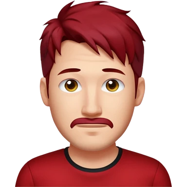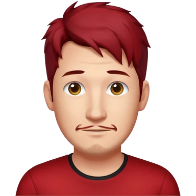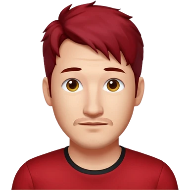 Markiplier with dark red hair, red shirt emoji