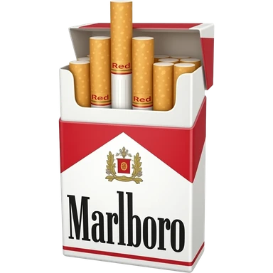 Cigarette pack emoji, Marlboro style, open box, visible cigarettes emoji