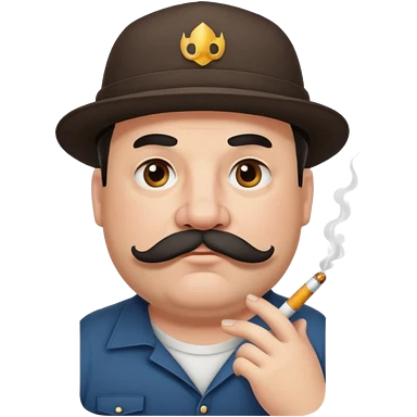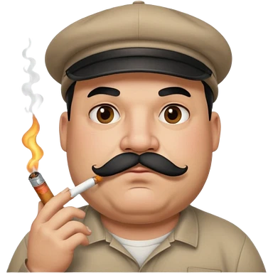a fat father in a flat-brimmed cap with a tattoo, a cigarette in his mouth, and a mustache. emoji