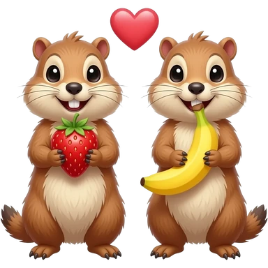 Two crazy Marmots, one with strawberry and another marmot with banana, heart between the two marmots, and these two marmots are a bit c emoji