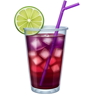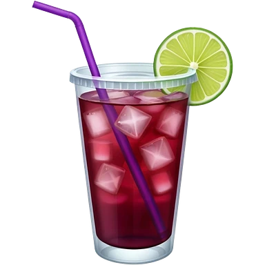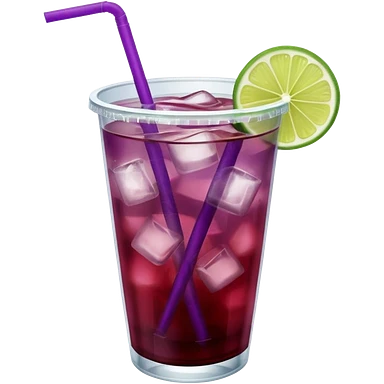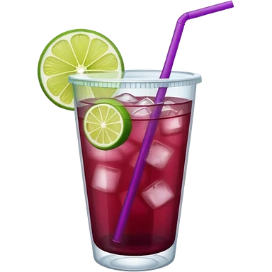 maroon purple cocktail with a lime wedge in the drink in a plastic cup with lid and straw emoji