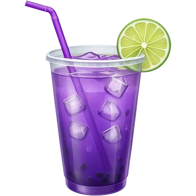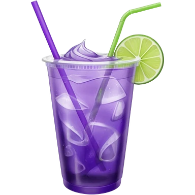 maroon purple cocktail with a lime in a plastic cup with lid and straw emoji | AI Emoji Generator