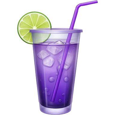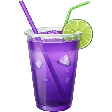 purple cocktail with a lime in a plastic cup with lid and straw emoji