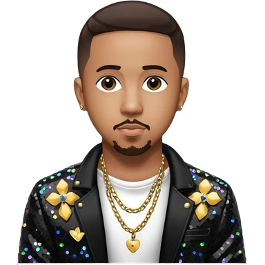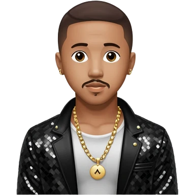 Marques Houston with dark brown hair, shirtless with necklace, metallic ivory jacket emoji