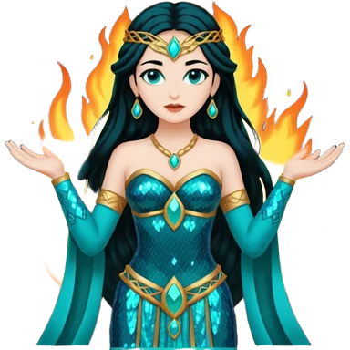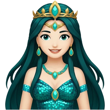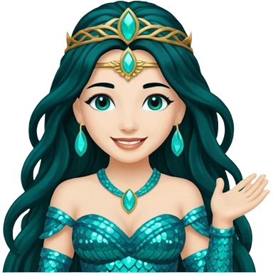 Salacia, Goddess of Hearth from Gods and Goddesses with long black hair, teal sequin outfit emoji