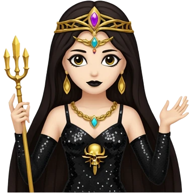 Neptune, God of Sea from Gods and Goddesses with long jet black hair, dark blue sequin outfit emoji
