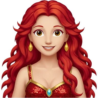 Vesta, Goddess of Hearth from Gods and Goddesses with long red hair, red sequin outfit emoji