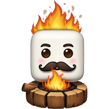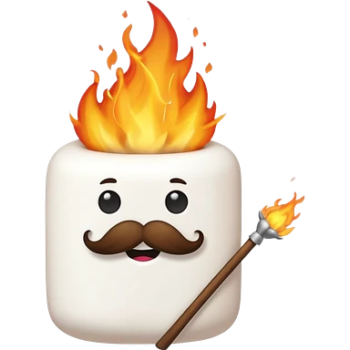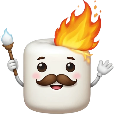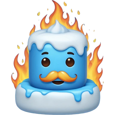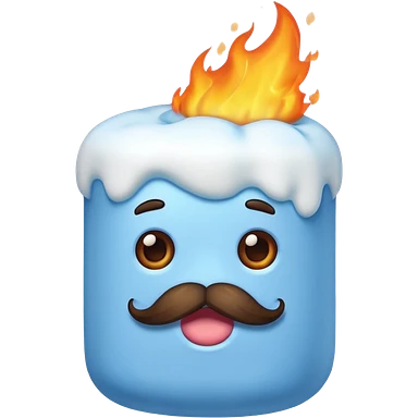 blue marshmallow on fire with mustache, just marshmallow emoji