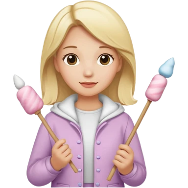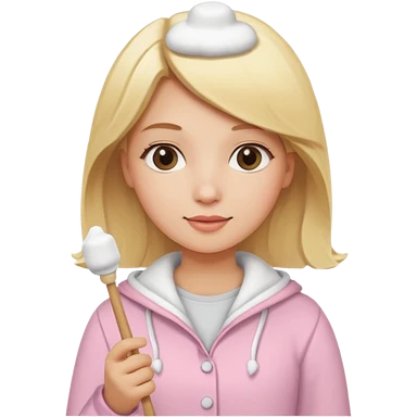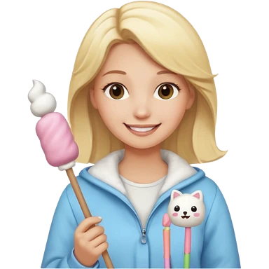 blonde woman cute clothes holding marshmallow stick emoji