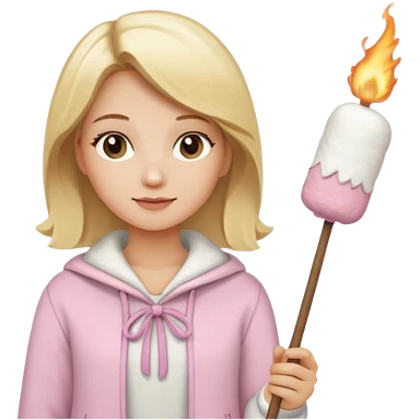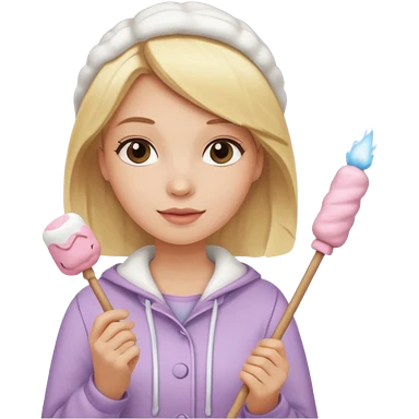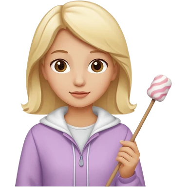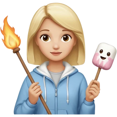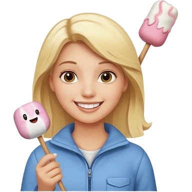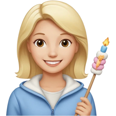 blonde woman holding marshmallow stick emoji