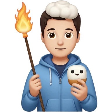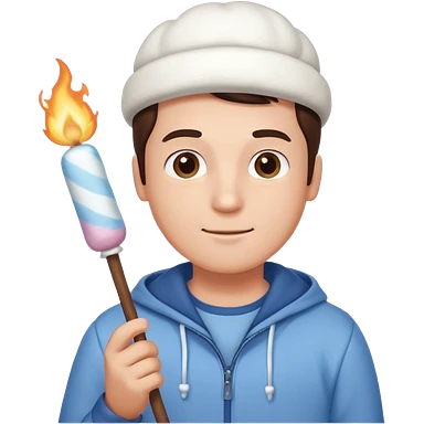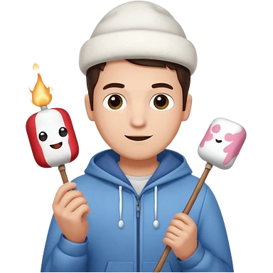 man cute clothes holding marshmallow stick emoji