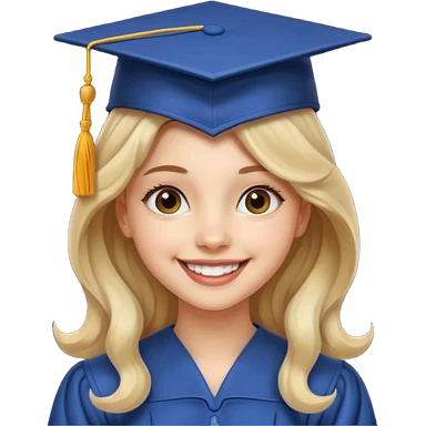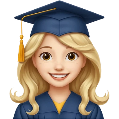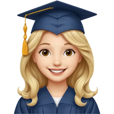 Graduated Students, Cheerful girl, long wavy hair, wearing graduation cap emoji