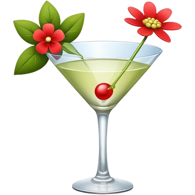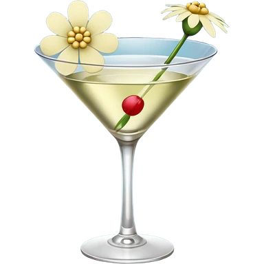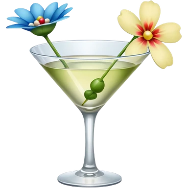 martini glass with 3 olives. no straw, just 1 stick that the olives will be stuck on. olives should have the same size. no leaves at all. liquid should be more white/clear than green emoji