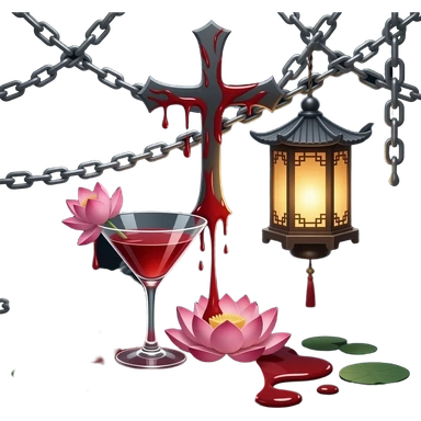 martini & lotus, blood & cross, gothic, dark, more blood, chains, asian lantern emoji