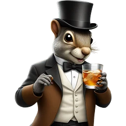 a mafia looking squirrel holding a martini drink wearing a detective hat emoji