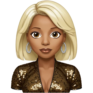 Mary J Blige with platinum blonde hair, dark brown sequin outfit emoji