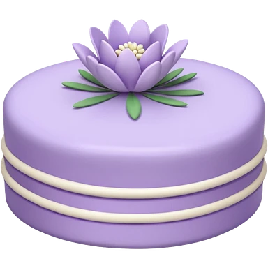 Pastel white and pastel purple marzipan cake with a lavender flower laying on top of it emoji