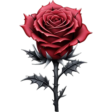 A pitch-dark obsidian-black dark gloomy gothic edgy thorny dusky rose with a black stem, it has blood splatter on it emoji