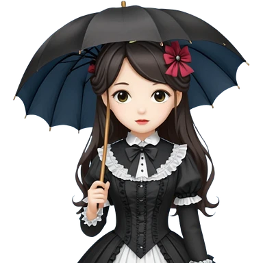 Beautiful pretty Victorian gothic Lolita lady, anime style, gorgeous hair, beautiful dress, holding umbrella emoji