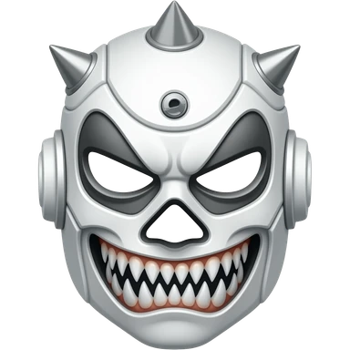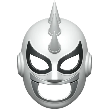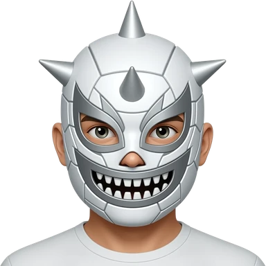 Mascara de lucha libre blanca con diseño de robot von 3 puas en la cabeza a lo largo con diseño de ciborg y que se vean los ojos y que los dientes sean triangulares del luchador emoji