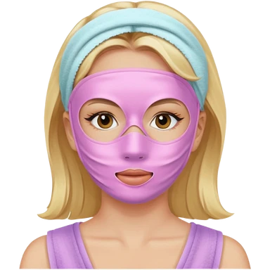 chica con el pelo castaño, albornoz y turbante de toalla rosa pastel, mascarilla facial blanca emoji