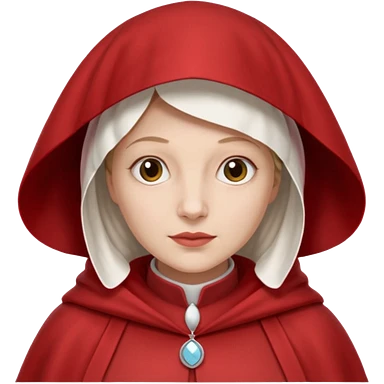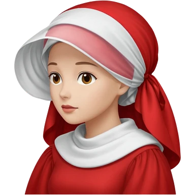 mujer de perfil con un vestido rojo de manga y falsas largas y voluptosas, y una toca blanca que cubre su cara emoji