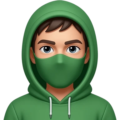 Green hoody and irony mask on face emoji