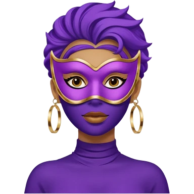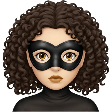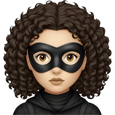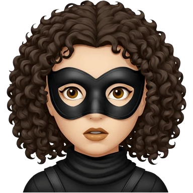 woman with robber mask concerned dark curly hair and robber outfit emoji