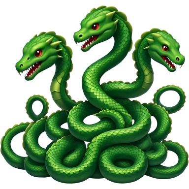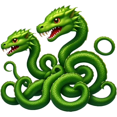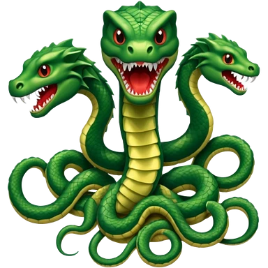 Create a single emoji of a Hydra in full body: a muscular reptilian creature with four legs, a tail, and multiple serpent heads on long necks. No wings, not worm-like. Slight side angle, stylized like an emoji, clearly recognizable. No background. emoji