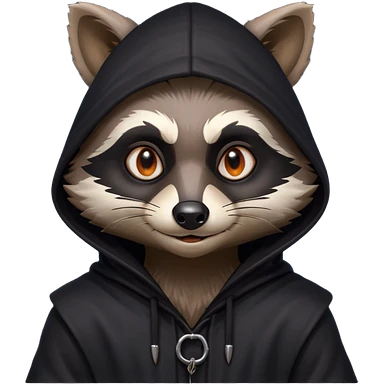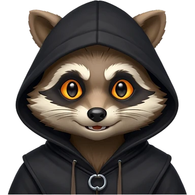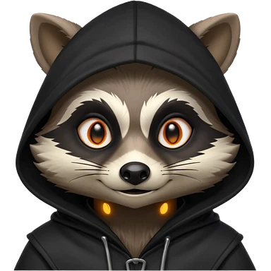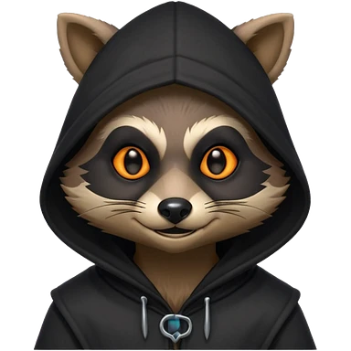 gothic thief raccoon portrait, head and shoulders only, dark hood, glowing eyes, mysterious sneaky grin, 3D cartoon, mobile game icon style, clean background, no text, no watermark emoji