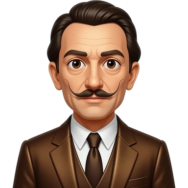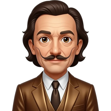 Salvador Dalí with dark brown eyes, dark brown hair and thin mustache, rich brown metallic suit emoji