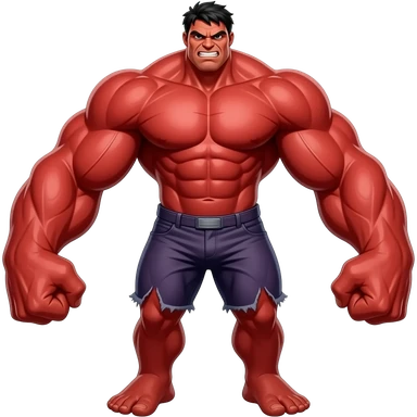 Massive very tall muscular red Hulk in black male bikini full body image realistic flexing 💪 emoji | AI Emoji Generator
