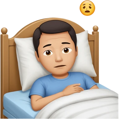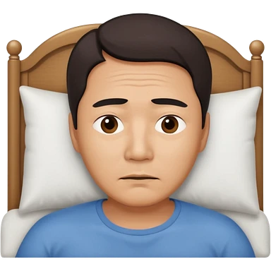 A middle-aged Asian man lying in bed, unable to sleep emoji