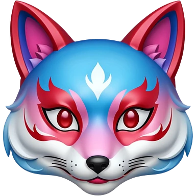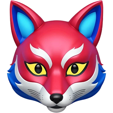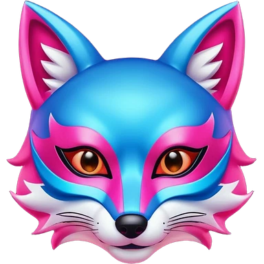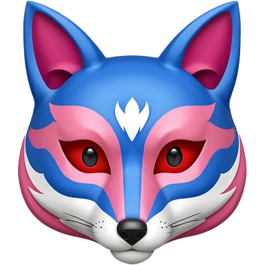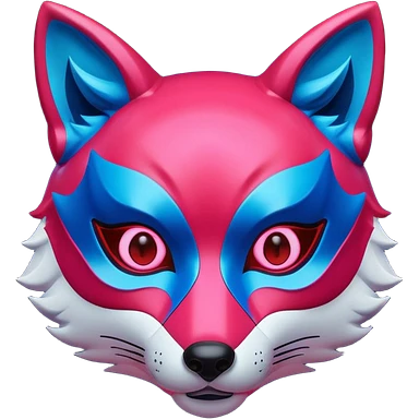 Red, blue and pink fox mask emoji