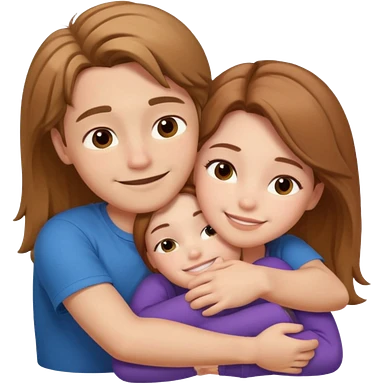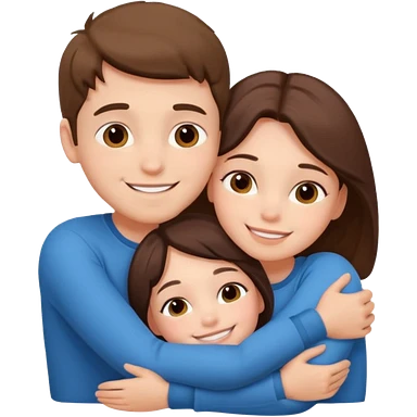 Male white emoji no hair , girl white emoji brown hair long , and an Aussie dog all together emoji