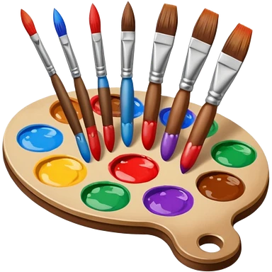STICKER PINCEAUX ROUGE ET BRUN AVEC PALETTE DE PEINTURE ET TACHE DE PEINTURE emoji