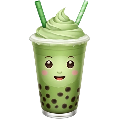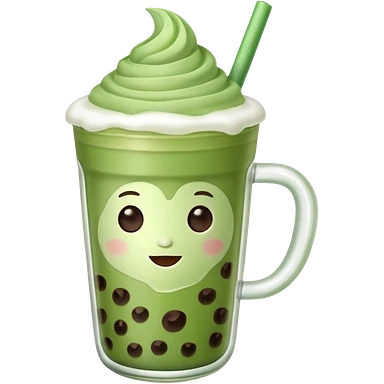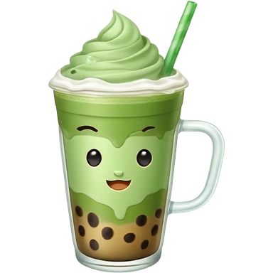 matcha latte with boba and ice without sticks for drinking and add a lil coffee emoji
