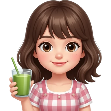 Brunette girl drinking matcha with strawberry cold foam from Starbucks emoji