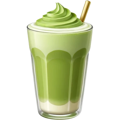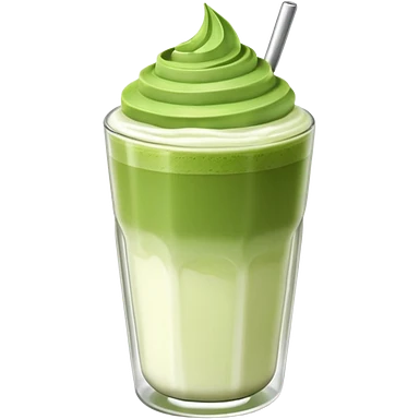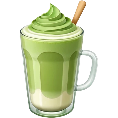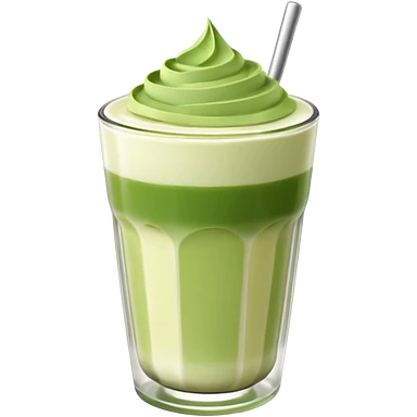 matcha latte in a clear glass with green layers and frothy top emoji