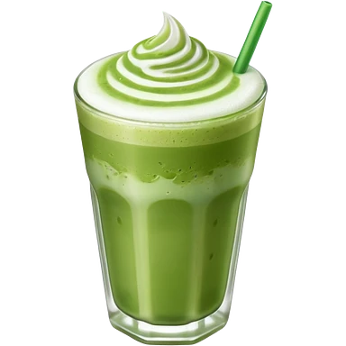 a glass of matcha latte with whipped cream and green tea powder on top. Without straw emoji