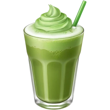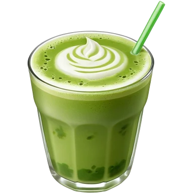 a glass of matcha latte with whipped cream and green tea on top emoji