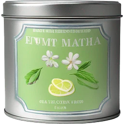 pretty matcha scented candle in silver tin with vintage label realistic emoji
