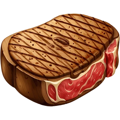 realistic raw entrecôte steak thick red meat strong white marbling rounded natural shape curved fat cap visible muscle grain fresh moist no grill no plate no faces clean 3D soft lighting transparent background emoji scale emoji