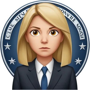 A CIA officer, looking like Carrie Mathison from the "Homeland" TV series, longer hair and CIA-like badge emoji