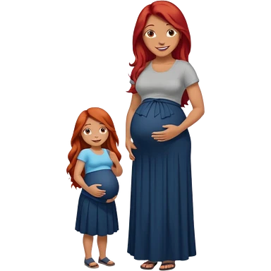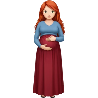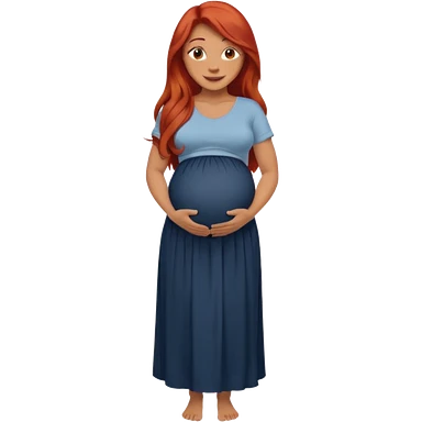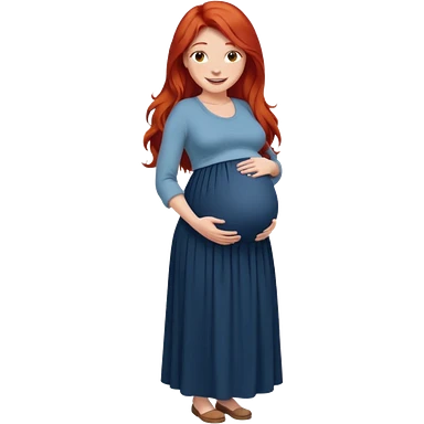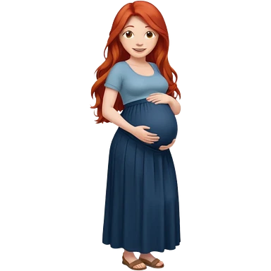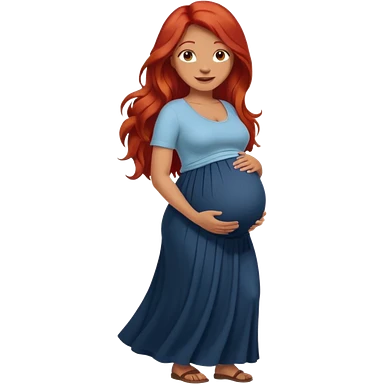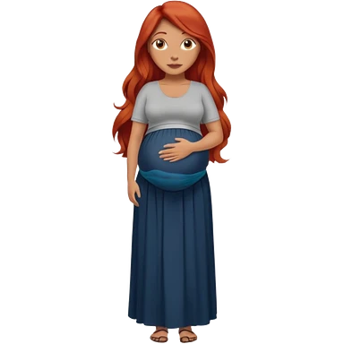Make a strong women with long red hair, pregnant with maxi skirt, pretty emoji