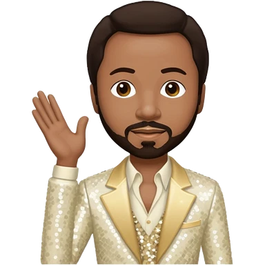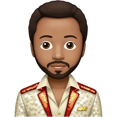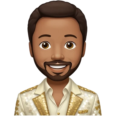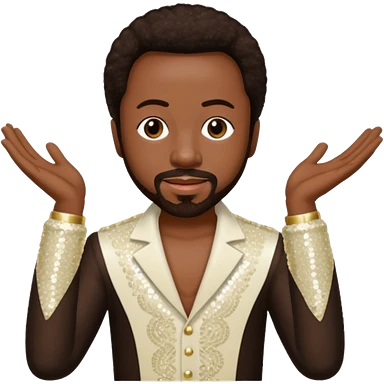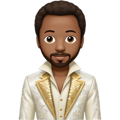 Maurice White from Earth, Wind & Fire with dark brown hair, ivory sequin outfit emoji