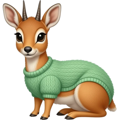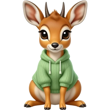 Dik dik wearing a light green fluffy jumper, facing the front and sitting down emoji