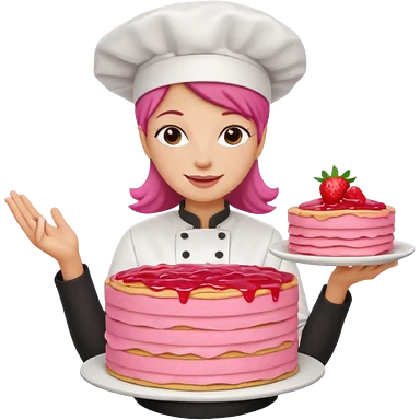 woman chef holding pink Crepe gooey strawberry SPAM jam cake emoji