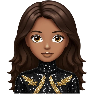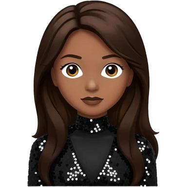 Maxine Jones from En Vogue with long dark brown hair, black sequin outfit emoji | AI Emoji Generator